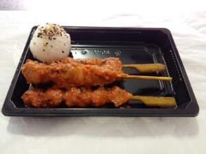 Yakitori Pollo con Salsa Sate o Teriyaki y Arroz