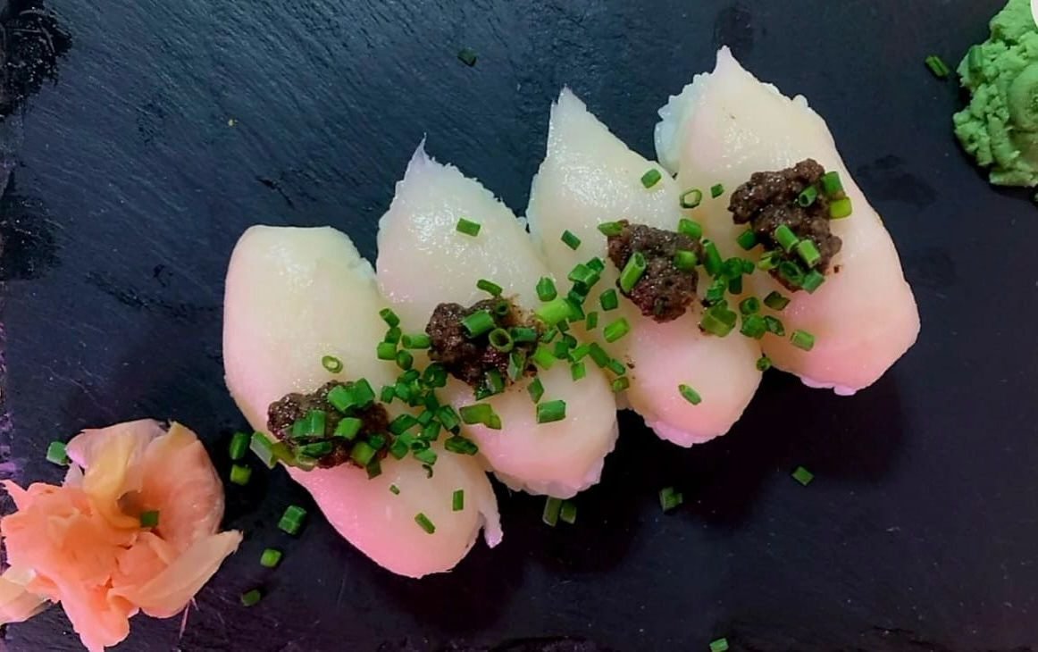 Bandeja 4 niguiris pez mantequilla o escolar negro con pasta de trufa y cebollino